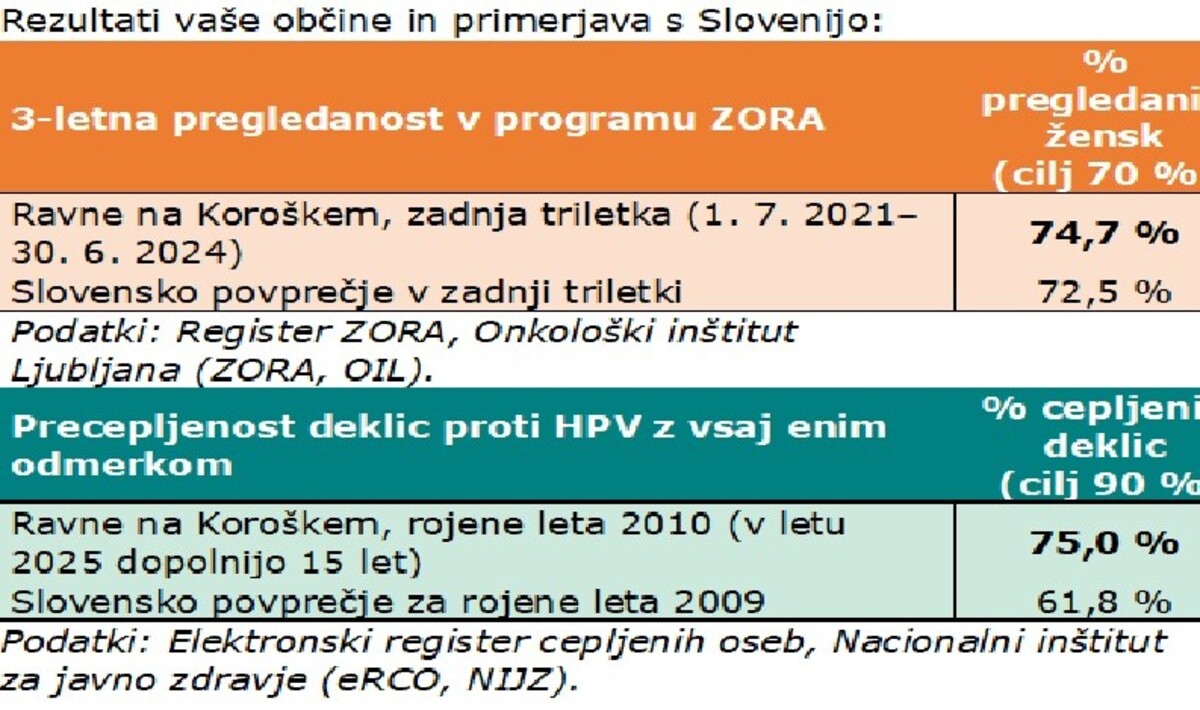 · vsaj 70 % udeležba žensk v presejalnem programu za raka materničnega vratu in