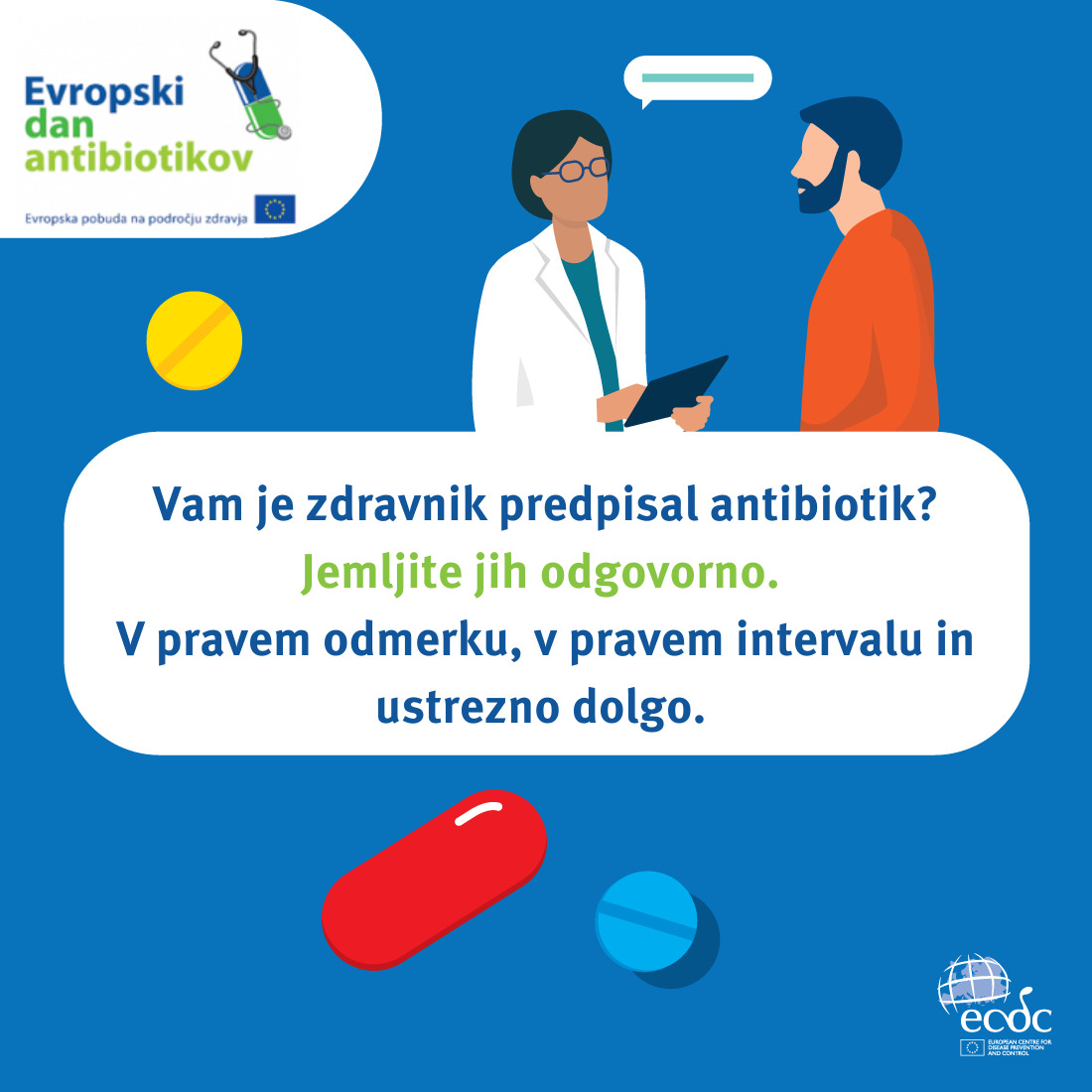 Vsako leto 18. novembra obeležujemo evropski dan ozaveščanja o antibiotikih, ko opozarjamo na nujnost preudarne uporabe antibiotikov in nevarnost razvoja odpornosti bakterij na ta zdravila. V tednu med 18. in 24. novembrom obeležujemo tudi svetovni teden ozaveščanja o mikrobni odpornosti (angleško World Antimicrobial resistance Awareness Week – WAAW 2025), ki poteka pod geslom: Ukrepajmo zdaj: zaščitimo našo sedanjost, zavarujmo našo prihodnost.