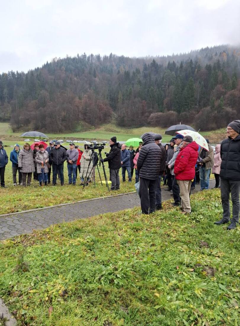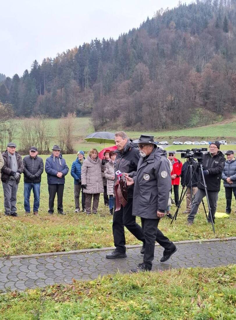 Venec k spomeniku sta položila predsednik Koroškega domoljubnega društva Franjo Malgaj, Vladimir Ovnič, in podpredsednik društva Vojko Močnik.