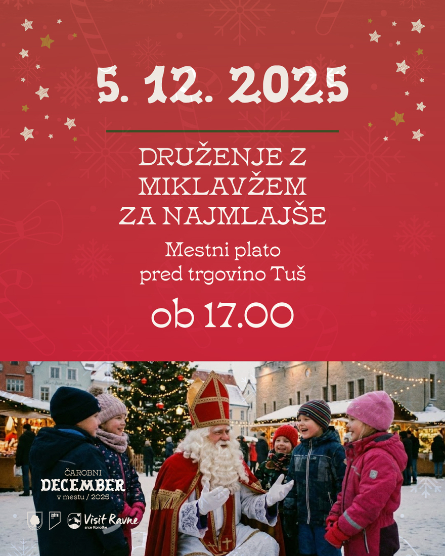 Pridružite se nam na čarobnem popoldnevu, ko bo pred mestnim platojem zaživel praznični utrip Miklavževe tržnice. Najmlajši bodo lahko pokramljali z Miklavžem, odrasli pa se sprehodili med stojnicami, začutili praznično toplino in skupaj z nami vstopili v december.