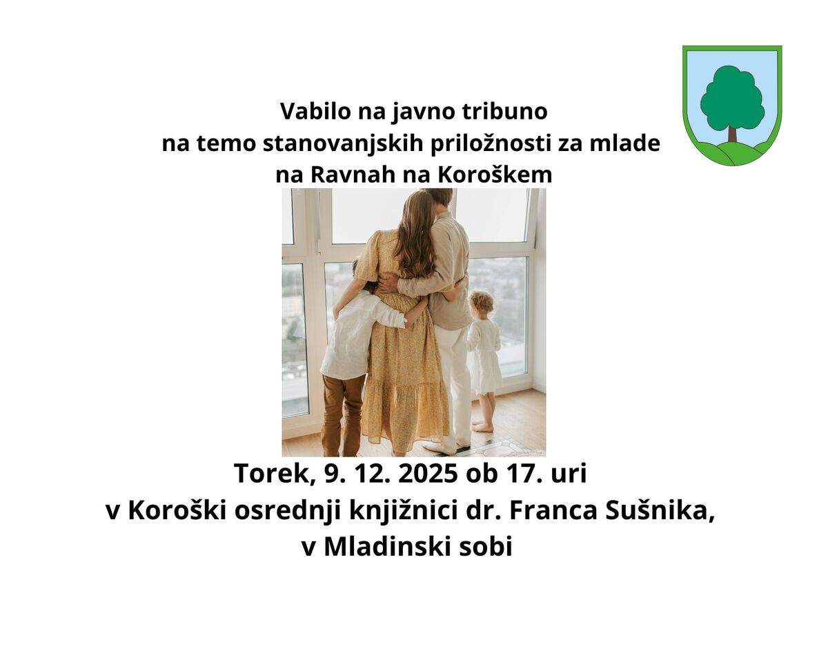 Vabljeni na javno tribuno na temo stanovanjskih priložnosti za mlade na Ravnah na Koroškem, ki bo