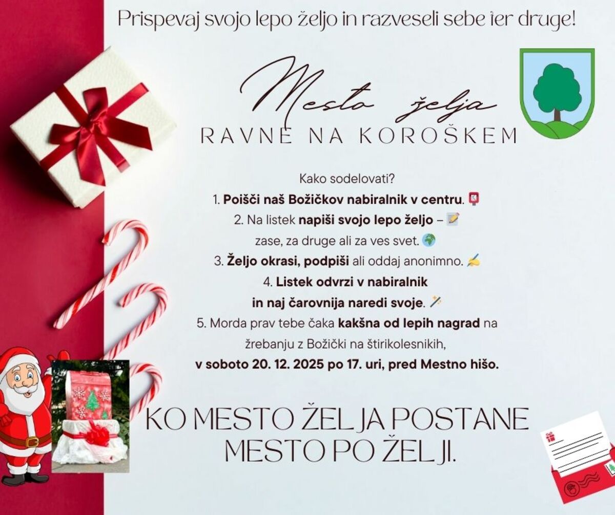 Občina Ravne na Koroškem v čarobnem decembru na mestnem platoju pripravlja tudi posebno priložnost, da postanemo mesto želja in mesto po želji vsakega od nas!