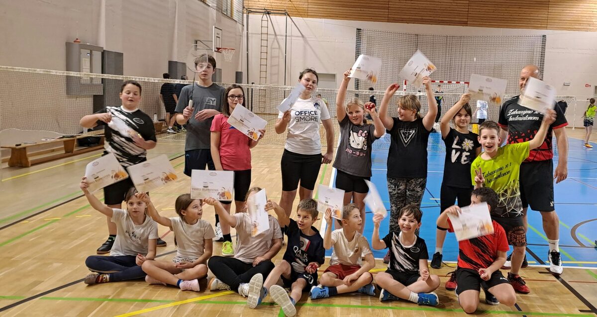 Med najmlajšimi, ki so se letos prvič spoznali z badmintonom, je v ekipnem odbijanju žogice v zrak slavila ekipa Neja Vute, Leja Tomazin in Aneja Ćiraković z 48 odboji. Le en odboj manj (47) je dosegla ekipa Sofija Pavlinič, Lana Kozamurnik in Mina Vute, tretji pa so bili dečki Bine Gostenčnik, Jakob Duler in Mark Zih z 31 odboji.
