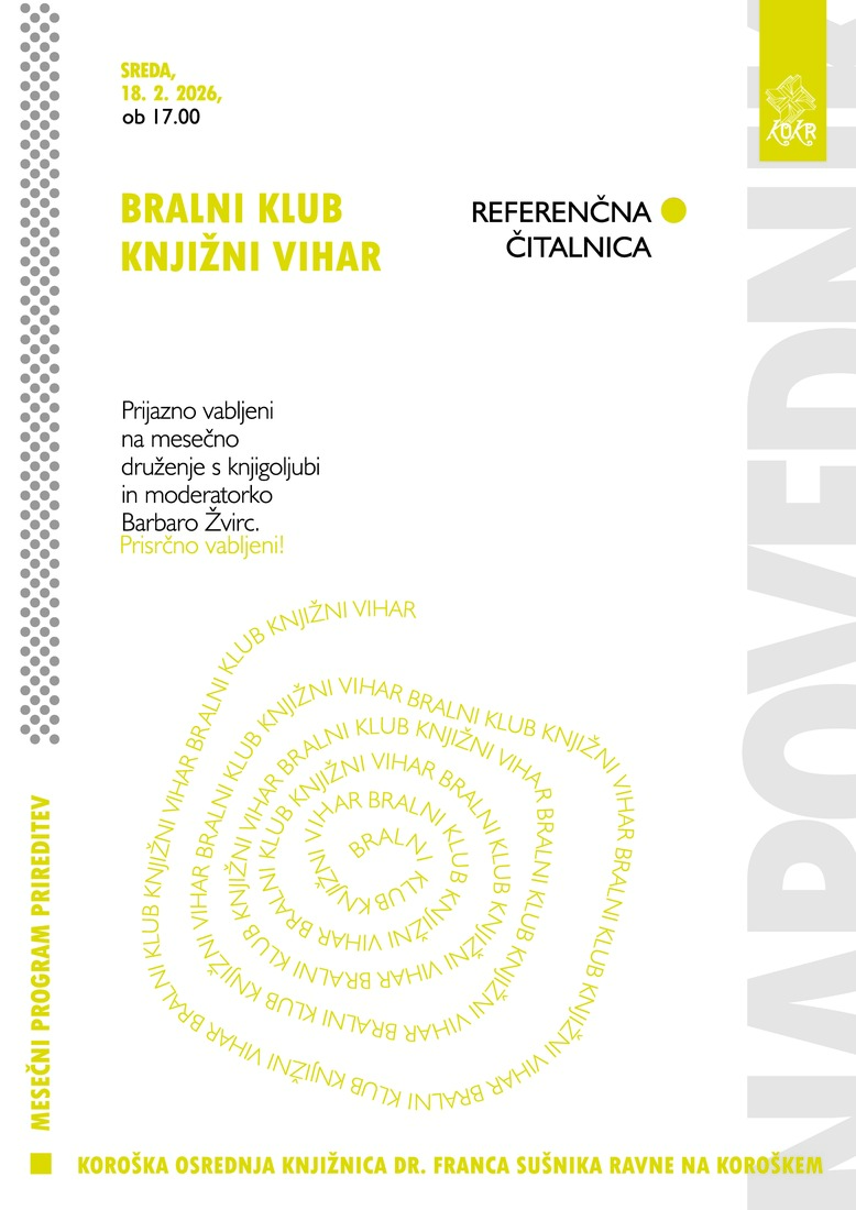 Prijazno vabljeni na mesečno druženje s knjigoljubi in moderatorko Barbaro Žvirc.
