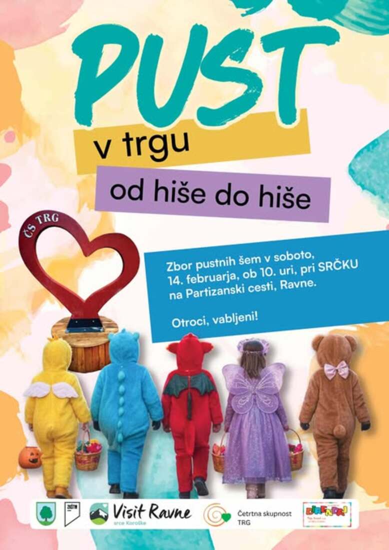 V soboto, 14. februarja, ob 10.00, vabimo vse pustne maškare na Partizansko cesto (shod pri Srčku).