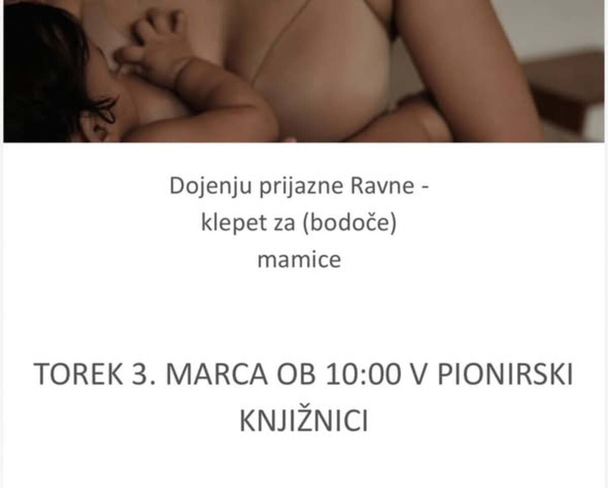 Dojenju prijazne Ravne klepet za (bodoče) mamice TOREK 3. MARCA OB 10:00 V PIONIRSKI KNJIŽNICI