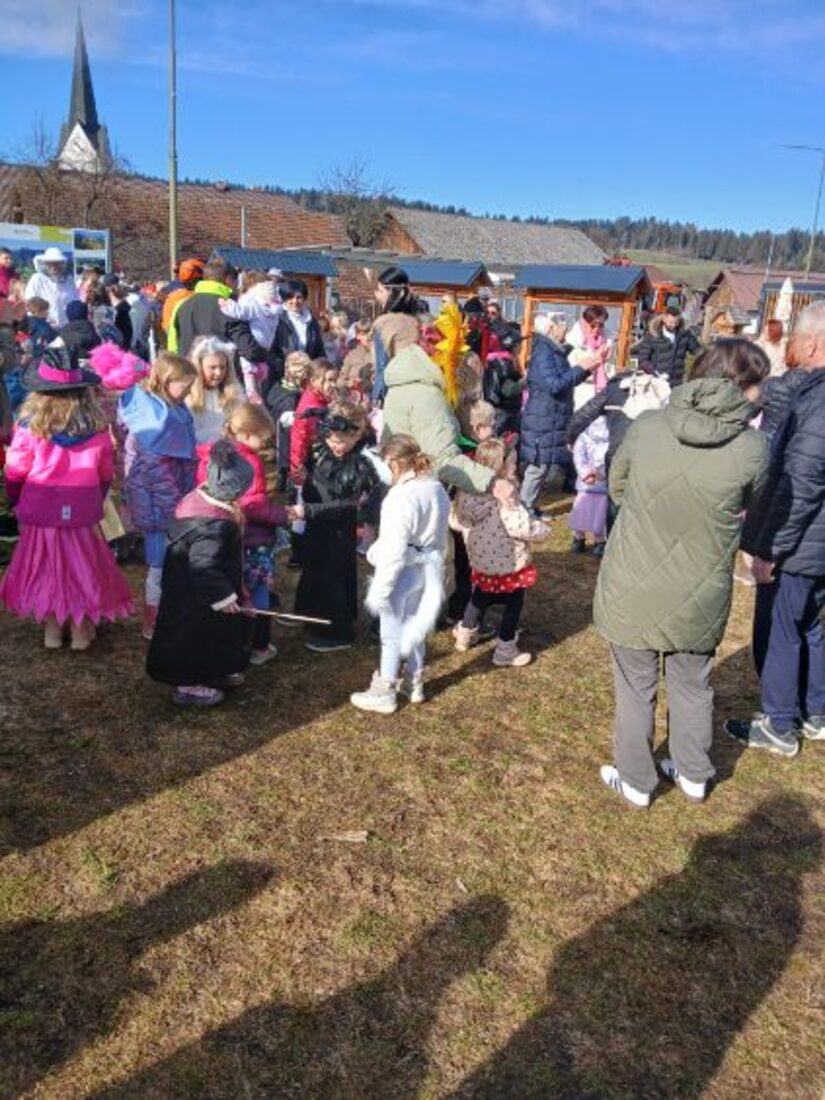 Posebno vzdušje so ustvarile članice pogovorne skupine Seniorke iz Kotelj, ki so obiskovalce pogostile s toplim čajem in krofi, za katere je poskrbela Krajevna skupnost Kotlje. Pustne šeme in živahno petje so odmevali po vasi, ob zvokih harmonike in prepevanju pesmi pa so otroci v spremstvu vzgojiteljic, učiteljic in odraslih simbolično premagovali zimo ter pozdravljali prihajajočo pomlad.