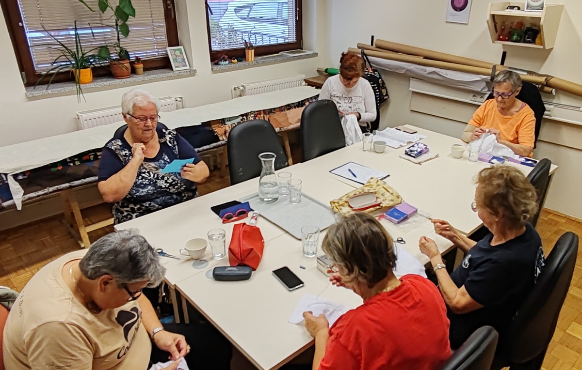 Na delavnicah osvojijo tri tehnike vezenja, se posvetijo natančnemu izrezovanju obšitih vzorcev, ter pripravijo čudovite izdelke.