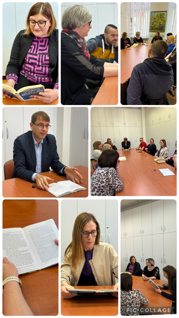 Z branjem smo na Občini Ravne na Koroškem zaposleni v občinski upravi, na čelu z direktorico mag. Vlasto Kupljen in županom dr. Tomažem Roženom, začeli že ob 9. uri in prebirali črtice iz Solzic, našega velikega literata Lovra Kuharja - Prežihovega Voranca.