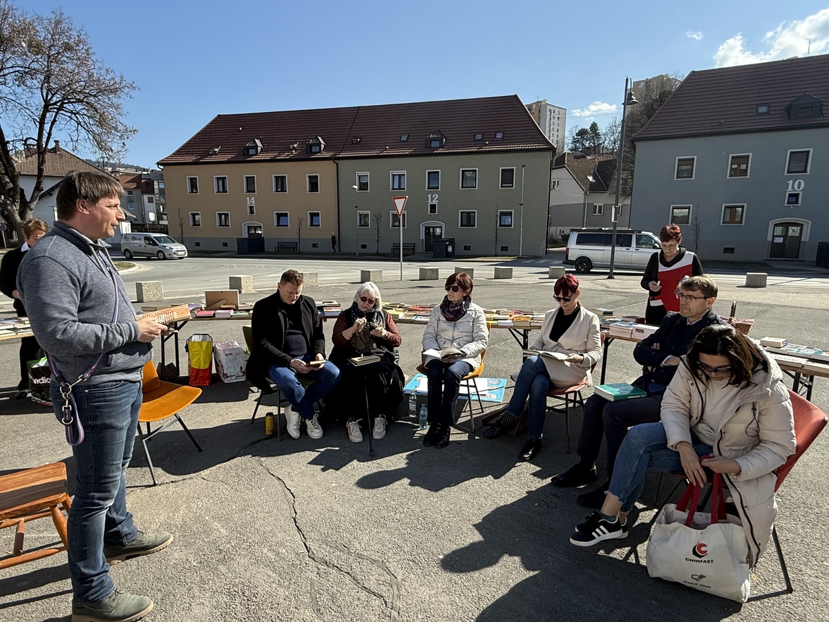 ❦ Ob 13.00 uri na Platoju pred TUŠ-em (30 min branja odlomki iz knjig Koroških avtorjev – Bukvarna KID Radovednež, občani, Bukvarna)