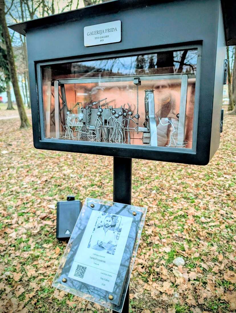 Prijatelji galerije Frida / Friends of the Frida gallery so se sinoči udeležili odprtja razstave 𝐓𝐚𝐝𝐞𝐣𝐚 Š𝐭𝐞𝐡𝐚𝐫𝐧𝐢𝐤𝐚, člana Društva ustvarjalcev D.tajl. Nekoč profesionalni športnik, danes uspešen v turistični dejavnosti in umetniškem ustvarjanju iz materialov, ki imajo svojo zgodovino, se Tadej Šteharnik pod znamko Custom by Tedi že dobro desetletje ukvarja s starimi odsluženimi industrijskimi kosi kovine, strojev ali naprav in jih sestavlja v nove uporabne predmete, ki imajo patino in svojo zgodbo. Za aktualno razstavo v Galeriji Frida je ustvaril prizor nekdanje fabriške kovačije. Odprtje je glasbeno pospremil saksofonist 𝐆𝐫𝐞𝐠𝐚 Š𝐭𝐞𝐡𝐚𝐫𝐧𝐢𝐤.