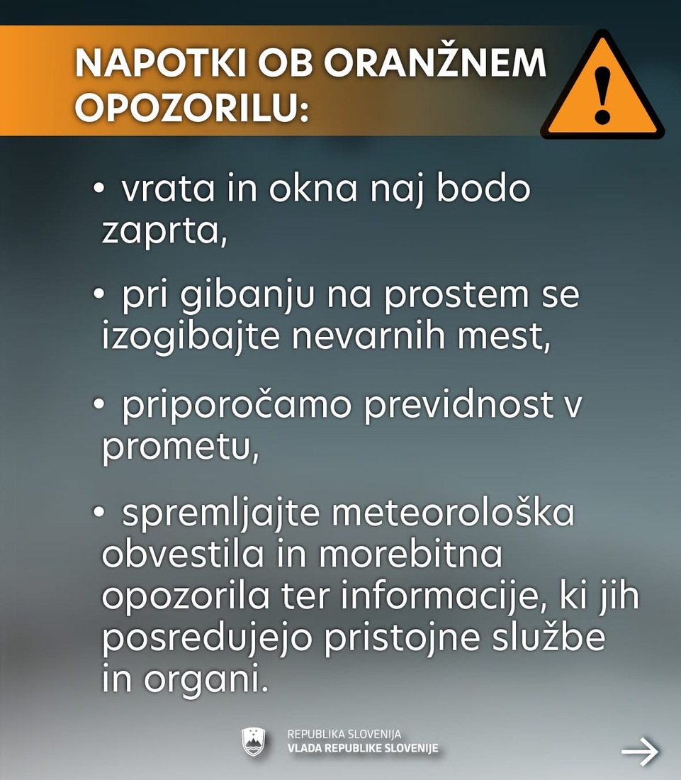 • Spremljajte razmere in upoštevajte navodila pristojnih služb.