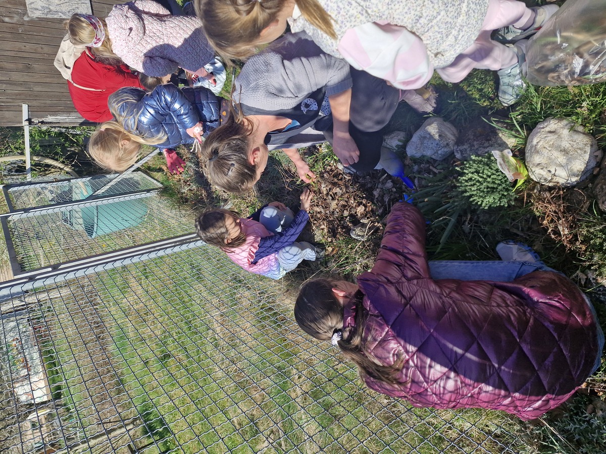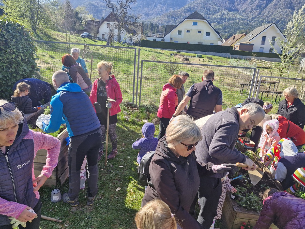 Otroci iz vrtca so sodelovali v delovni akciji skupaj z dedki in babicami. Skupaj so očistili in uredili igrišče ter peskovnik. Posebej zanimivo jim je bilo delo v zemlji, kjer so urejali grede z zelišči. Ob tem so krepili medgeneracijsko sodelovanje ter skrb za skupni prostor.