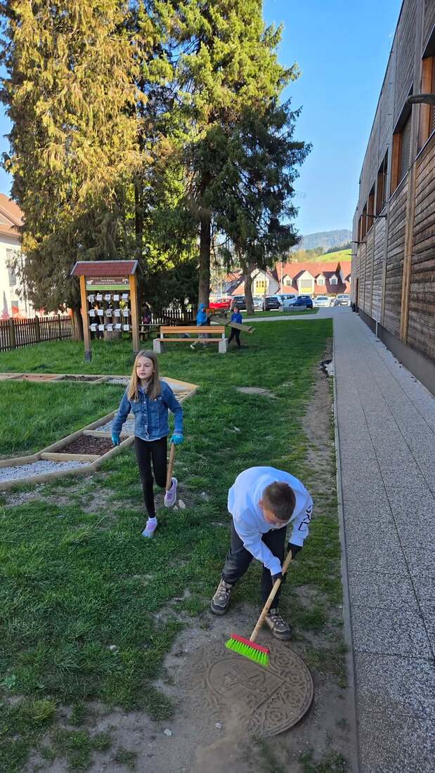 Čas za čistilne akcije so izkoristile tudi učenke in učenci Podružnične šole Koroških jeklarjev POŠ Kotlje. Opremili so se z zaščitnimi rokavicami, prijeli metle in se lotili urejanja šolske okolice. S skupnimi močmi so poskrbeli, da je prostor, kjer se vsak dan učijo, družijo in igrajo, še bolj urejen in prijeten.