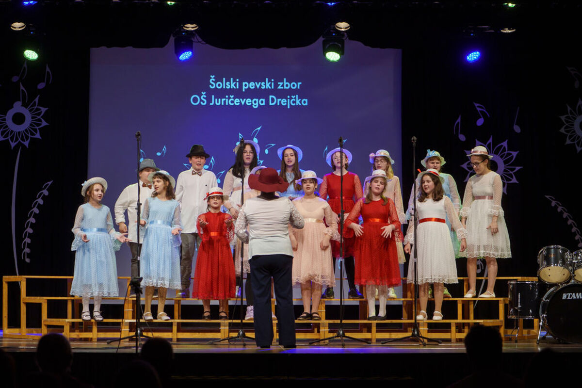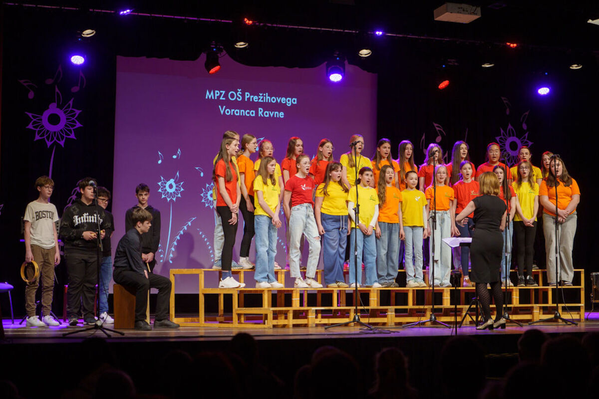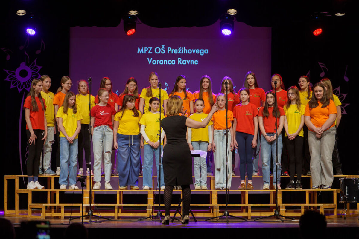 Na odru se je predstavilo devet pevskih zasedb: Pevski zbor Mlada srca Društva Sožitje Mežiške doline, Otroški pevski zbor OŠ Juričevega Drejčka, Otroški pevski zbor OŠ Prežihovega Voranca Ravne, Otroški pevski zbor podružnic Holmec in Leše, Otroški pevski zbor OŠ Mežica, Otroški pevski zbor OŠ Franja Goloba Prevalje, Mladinski pevski zbor OŠ Mežica, Mladinski pevski zbor OŠ Prežihovega Voranca Ravne ter Mladinski pevski zbor OŠ Franja Goloba Prevalje.