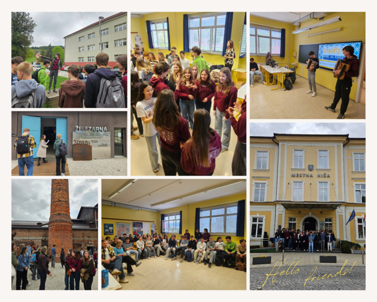 Dijaki so prvi dan začeli s srečanjem in sprejemom na ravenski gimnaziji, kjer so se med seboj spoznali in navezali prve stike. Program se je nadaljeval z ogledom mesta Ravne ter obiskom muzeja Štauharija, kjer so spoznavali lokalno okolje in njegovo kulturno dediščino.