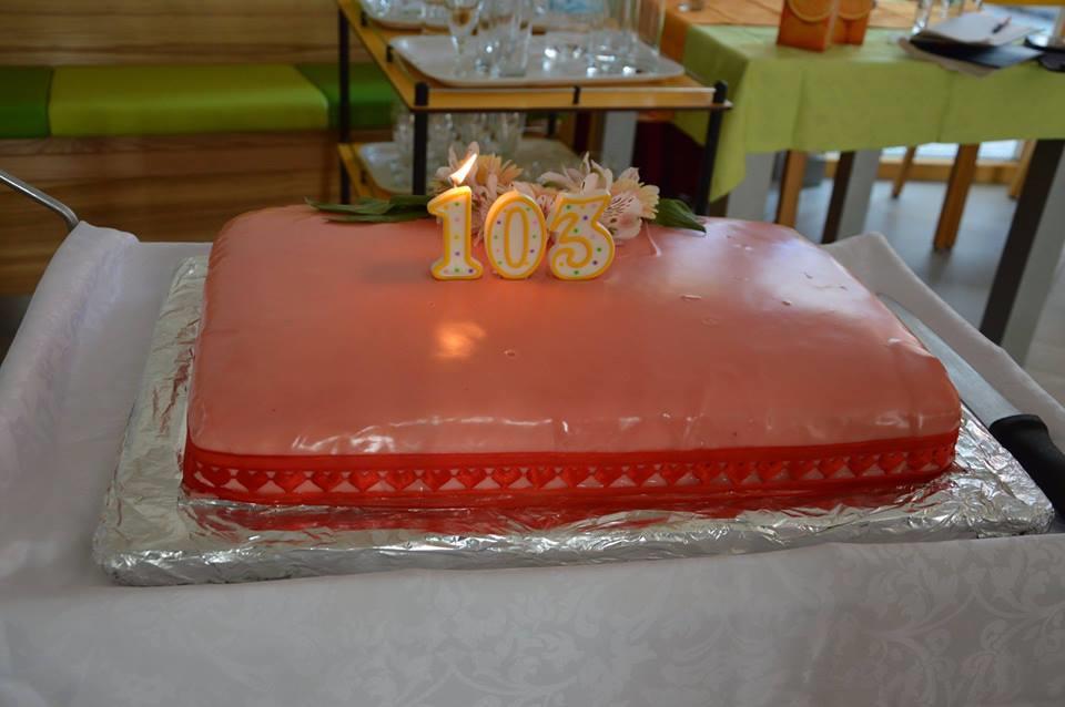 Na torti, ki so jo razrezali in razdeli med vse prisotne, je bila številka 103.
