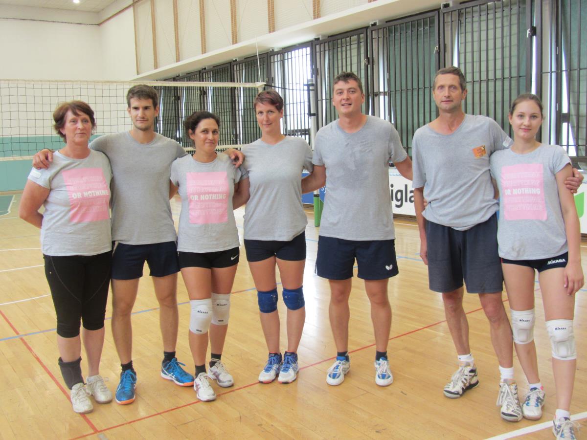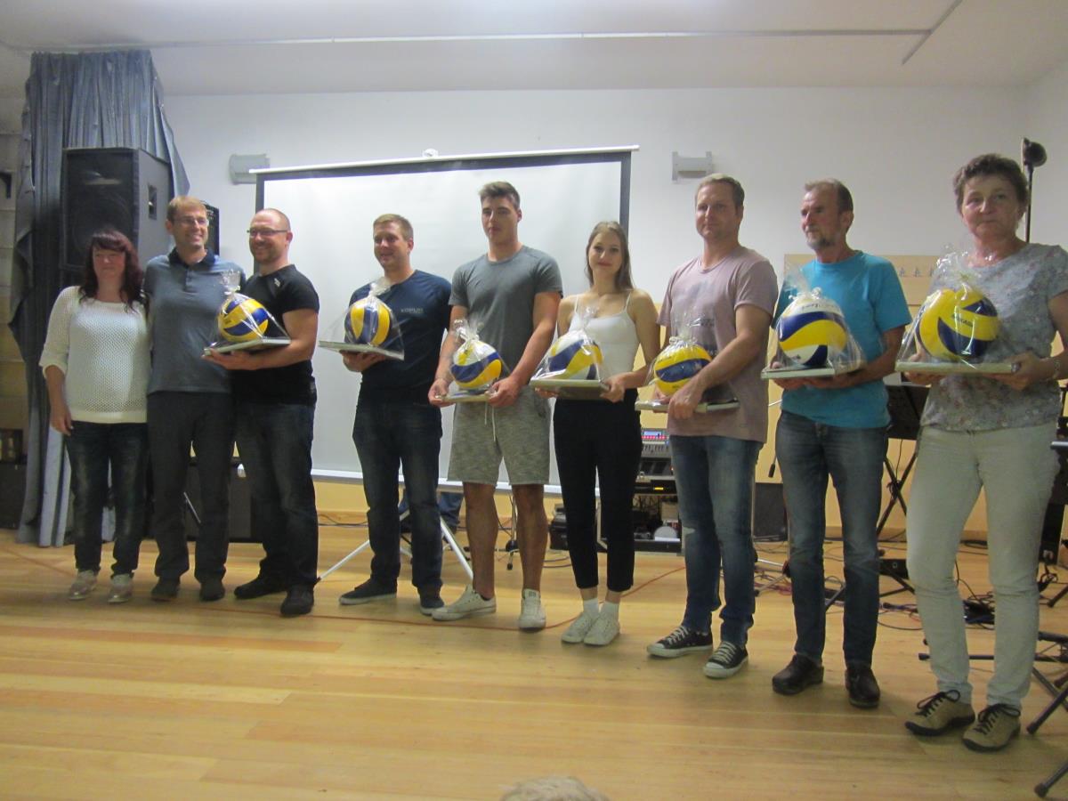 Devetindvajset let nam je bilo vreme zadnjo avgustovsko soboto naklonjeno, pri 30. turnirju mešanih ekip v odbojki v soboto, 25. 8. 2018, pa te sreče nismo imeli. A rešitev se vedno najde, tako smo tekmovalni del odbojkarskega turnirja preselili v telovadnico Doma telesne kulture. Sodelovalo je pet ekip, ki so igrale vsaka z vsako, po zelo izenačeni in napeti odbojkarski igri pa je bil na koncu vrstni red naslednji: prva je bila ekipa Mojster Mrki , drugi so bili Sosedi, tretja Fužinar banda, četrti Tihi favoriti in zadnji Munki. Izven tekmovalnega dela pa sta medsebojno moč pomerili dve veteranski ekipi (60+), ki sta sodelovali že na prvem turnirju pred tridesetimi leti. Zvesti spremljevalci naših odbojkarskih turnirjev so si ogledali tekme tudi v dvorani.