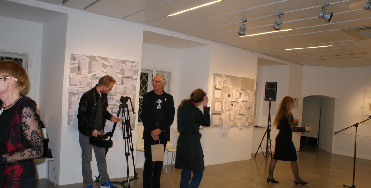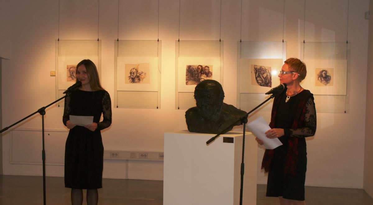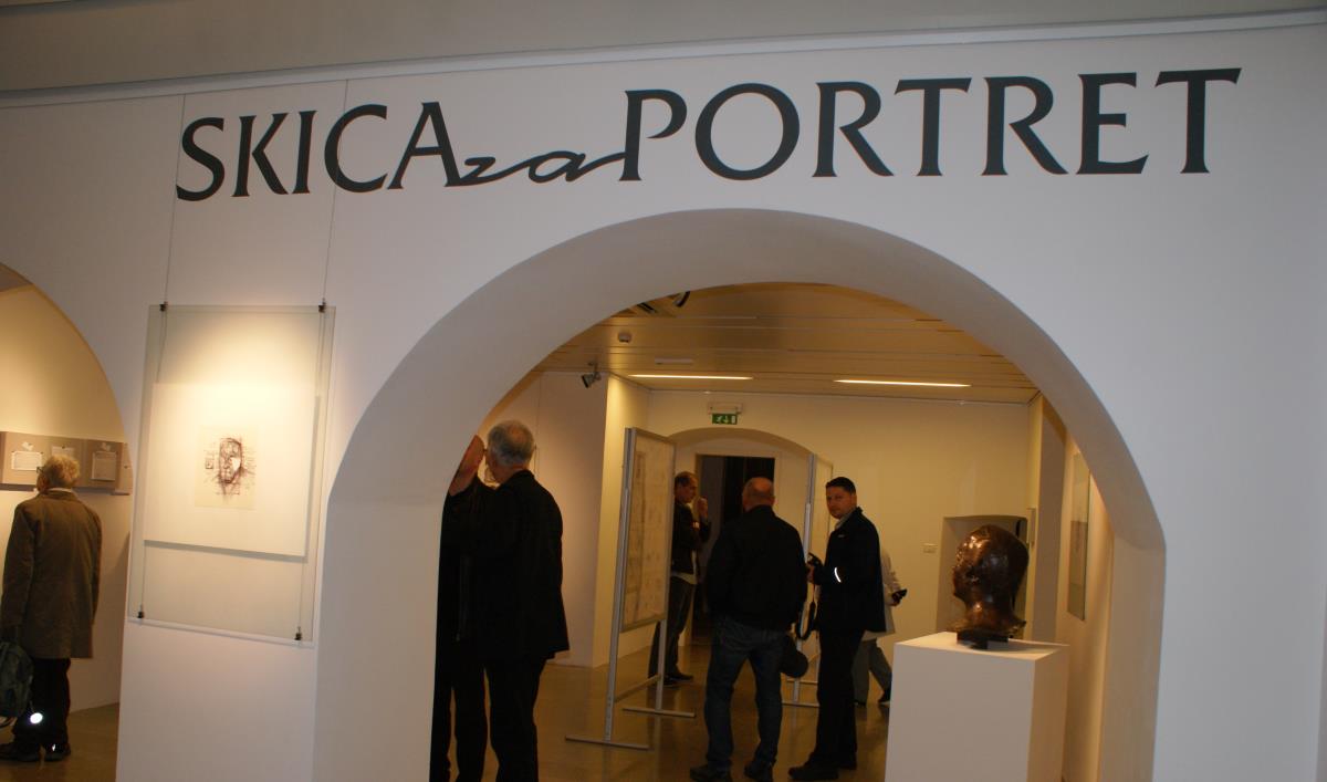 Na »predvečer« 70. jubileja Koroške osrednje knjižnice dr. Franca Sušnika so nas povabili v razstavišče na svojevrstno likovno-filatelistično-fragmentarno Skico za portret v počastitev obletnice obeh velikih mož.