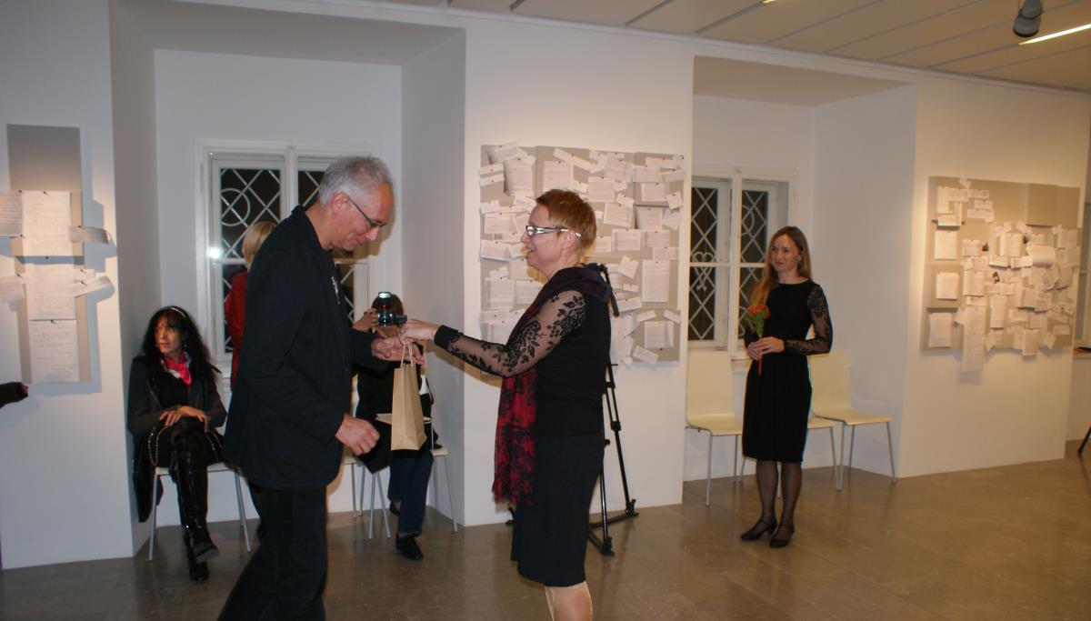 Vizualna osnova Skice in filatelističnega sklopa so predloge kiparja Mirsada Begića, je povedal avtor filatelističnega sklopa Borut Bončina. Prisluhnili smo bibliotekarkama in avtoricama razstave Simoni Vončina ter Simoni Šuler Pandev. Zaključno besedo je imela direktorica KOK mag. Irena Oder, ki se je zahvalila avtorjem te posebne in še nezaključene zgodbe oziroma razstave ter omenila, da poleg teh dveh pomembnih mož za knjižnico obeležuje jubilej, 90. obletnico, v mesecu novembru tudi Janez Mrdavšič, slavist, pisatelj in dolgoletni ravnatelj Koroške osrednje knjižnice.