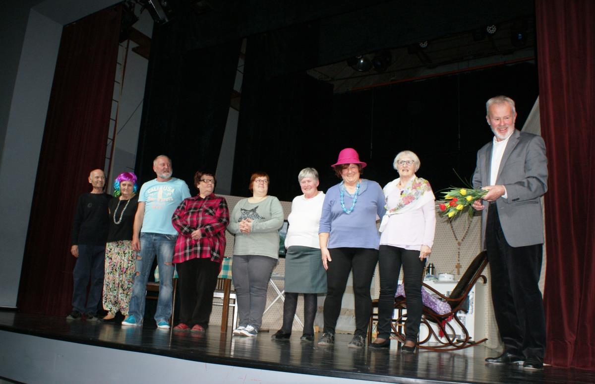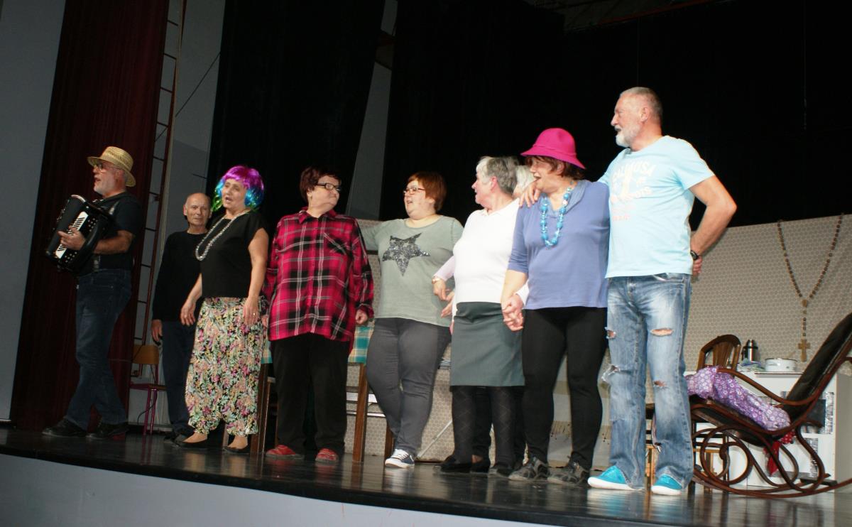 Ogledali smo si predstavo Gledališke skupine Koroškega medgeneracijskega centra pod naslovom Življenje pa teče naprej pod režijo Viktorije Pisar. Skeč, ki ga je napisala ga. Mežnaršič Alenka iz Metlike so priredile v pravo komedijo v treh dejanjih. Dodale so tudi glasbo, za katero sta besedilo prispevala Tina Vrenčur Vulc in Blaž Pavlinc, ki nas bosta spremljala na harmoniki. Igra, ki jo je priredila Marta Kovačec Vrenčur govori o mami in njenimi hčerkami, ki so ji ostale doma. Mama ima tudi problem s sluhom, hčerke pa so med seboj zelo različne in malce tudi navihane. Tu pa je še soseda, ki prihaja redno na kavo, predvsem tudi za to, da marsikaj vleče na uho.