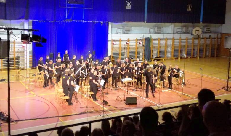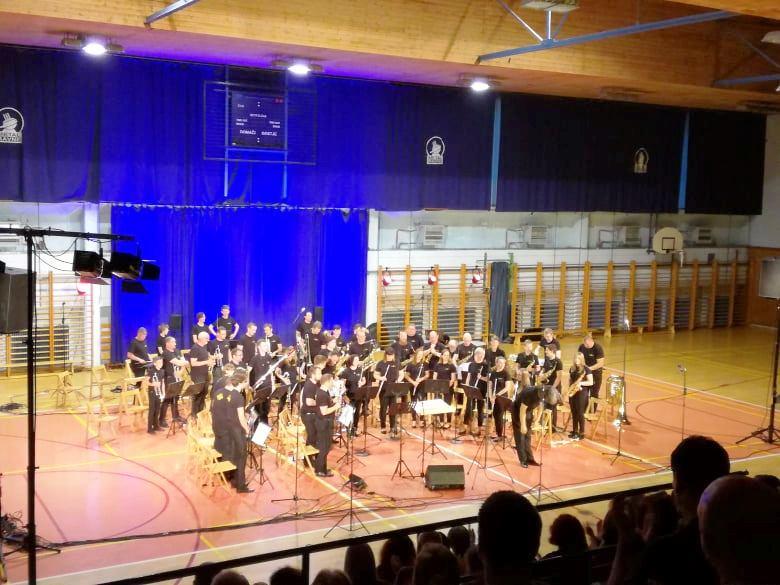 Sobotno muhasto vreme je pregnalo odličen tradicionalen koncert Pihalnega orkestra železarjev Ravne iz idiličnega Grajskega parka v Športno dvorano OŠ Prežihovega Voranca.