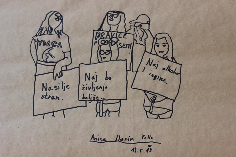 Učenci ravenskih osnovnih šol Prežihovega Voranca in Koroških jeklarjev ter Franja Goloba Prevalje in programa Izzivi medkulturne raznolikosti so po vzoru del Vesne Bukovec izdelali risbe z demonstrativnimi sporočili, ki so jih razstavili v svojih učilnicah. Delavnica je potekala pod mentorstvom kustosa pedagoga Petra Buhvalda.