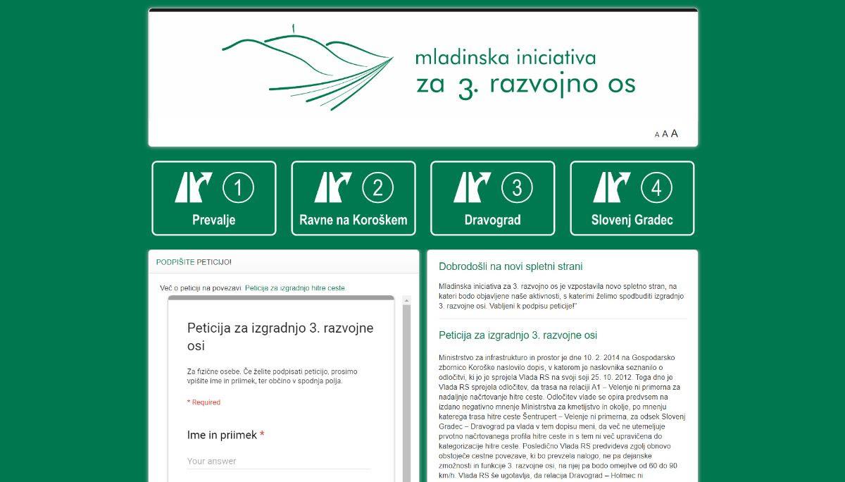 Prav na današnji dan, 15. julija 2014, je pričel delovati spletni informacijski portal Mladinske iniciative za 3. razvojno os hitronakorosko.si. Ta je bil sprva namenjen zbiranju podpisov v podporo peticiji za izgradnjo 3. razvojne osi na Koroško, katero je pripravila iniciativa.