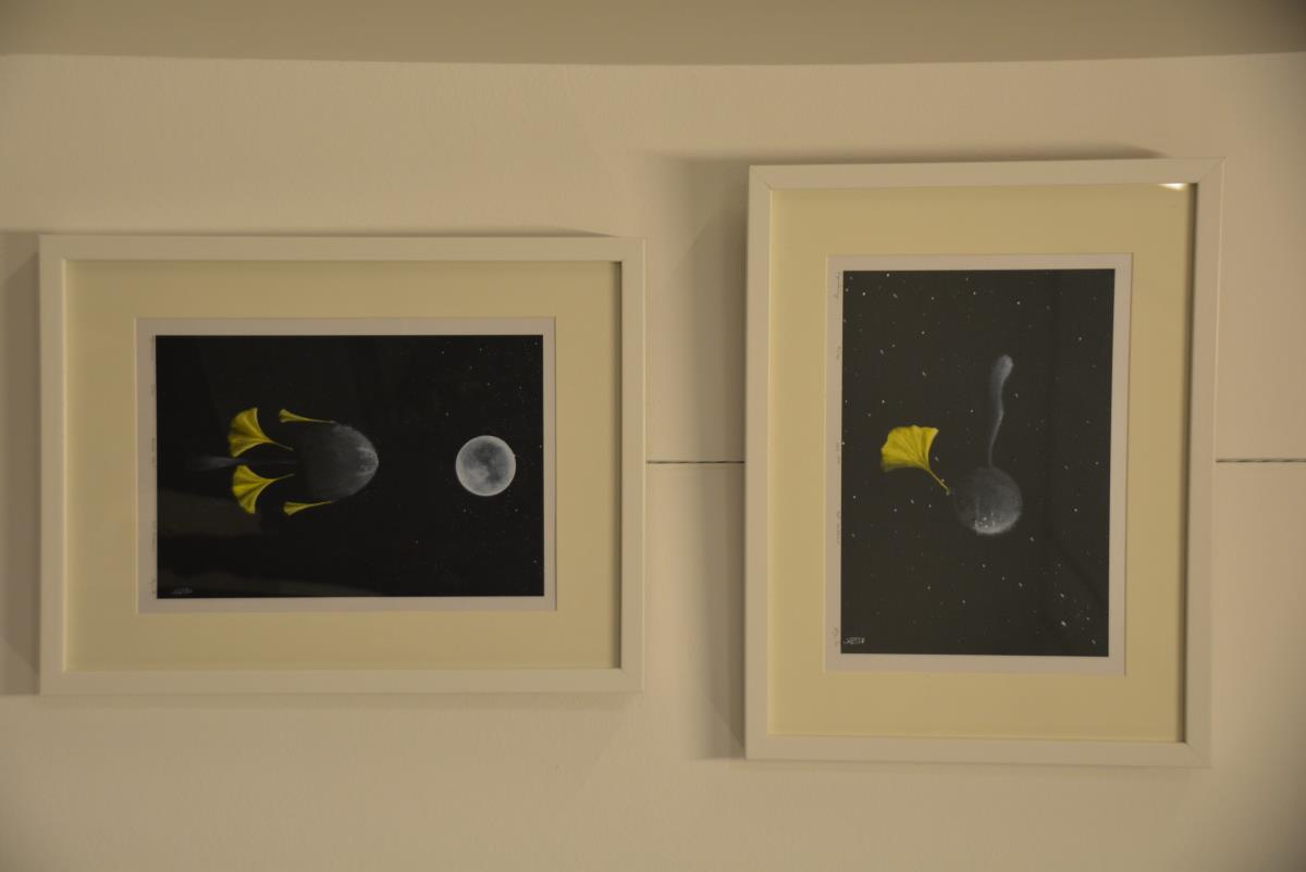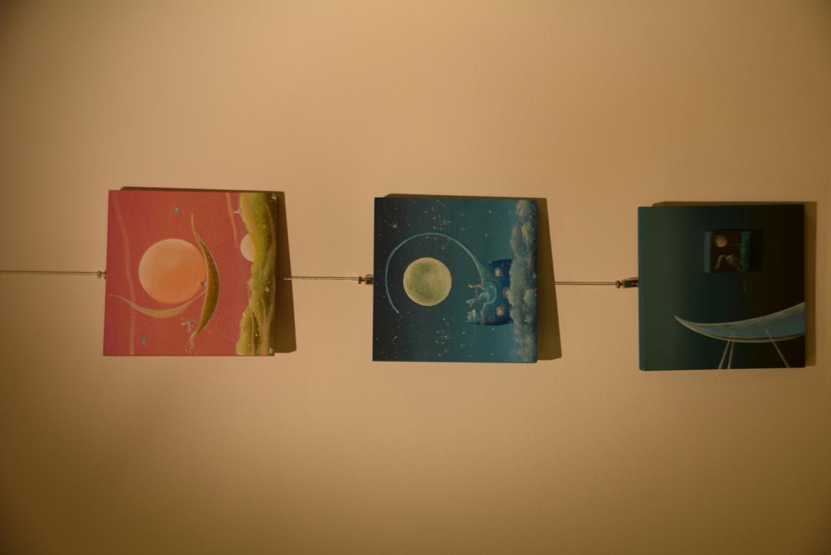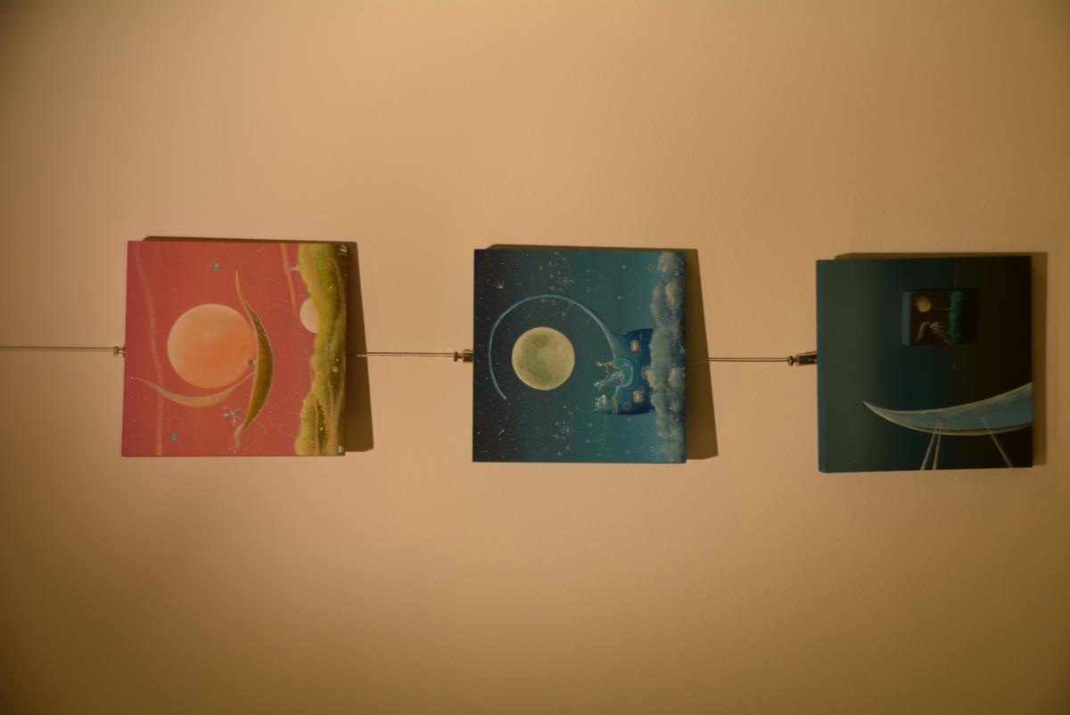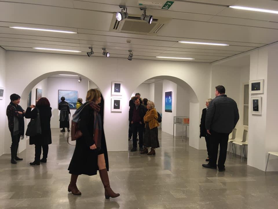 Tokrat nam je v razstavišču Koroške osrednje knjižnice dr. Franca Sušnika predstavila Bušije, skoraj mačke, del zlate kolekcije s srci, morske svetove in vesolja ter majhno kopico malih zgodb na malih podlagah.