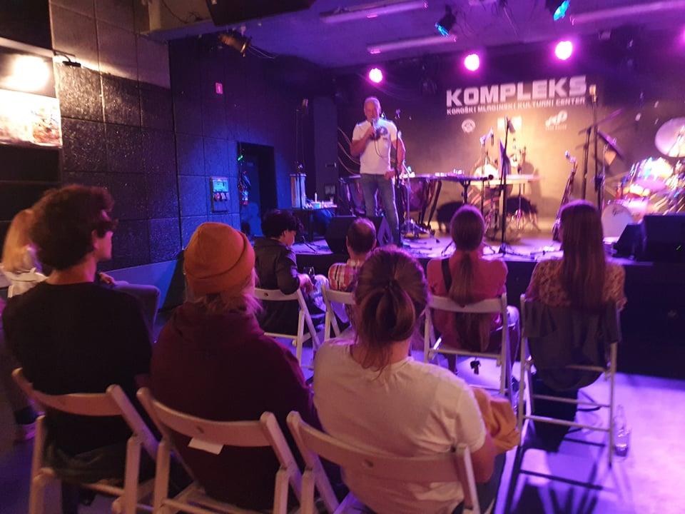 Z vsako zaigrano skladbo na odru Koroškega mladinskega centra Kompleks smo prisluhnili novi zgodbi, ki je popeljala občinstvo v vrhunske ritme in naredila večer še lepši. Zbrano občinstvo je nagovoril in pozdravil organizator Robi Jamnik.