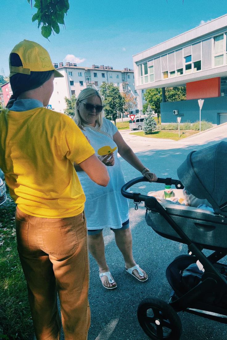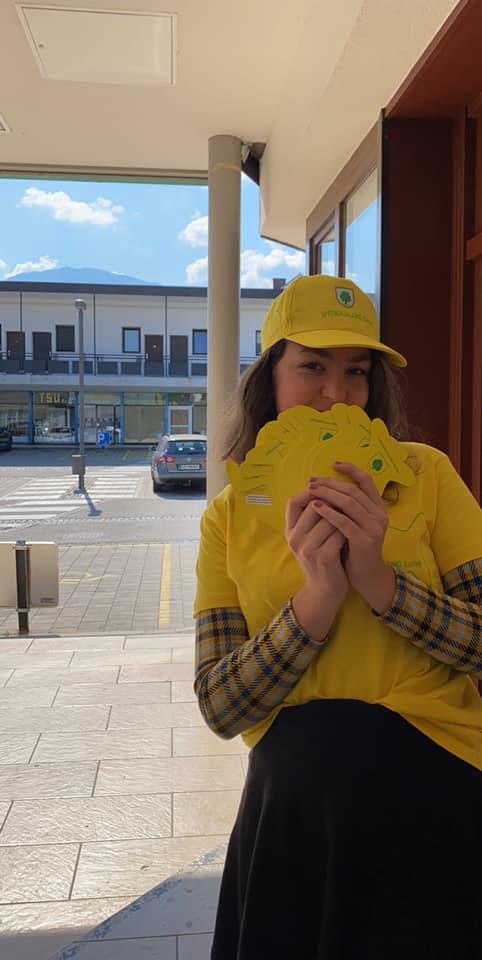 V tednu pred dnevom za spremembe so prijazni prostovoljci (dijakinje in dijaki Gimnazije in Srednje šole Ravne), ki ste jih prepoznali po rumenih majicah in kapah, na različnih lokacijah po mestu občankam in občanom podarjali 'ribice sprememb', na katerih so zapisane modre misli.