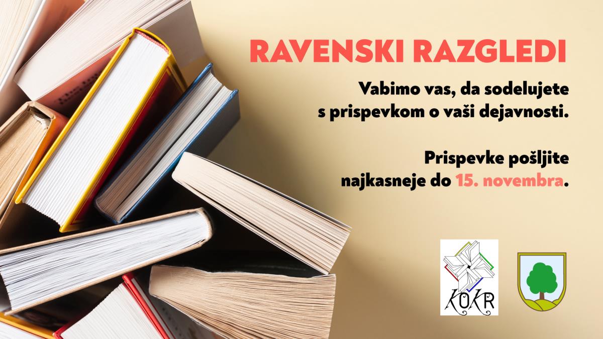 Decembrska številka občinskega glasila Ravenski razgledi bo izšla pred božičem, pred 25. decembrom. Prijazno povabljeni, da sodelujete s prispevkom o svoji dejavnosti.