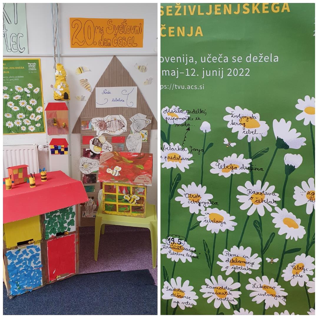 Ta čas smo v enoti Ajda obeležili v znamenju čebel. Potekale so različne dejavnosti v posameznih oddelkih in v združenih oddelkih (1. starost in 2. starost), tudi na prostem. Spoznali smo čebelarko Janjo Fužir, ki je nazorno predstavila svoje delo s čebelami. Pokazala nam je zaščitno opremo in razložila, čemu služi. Podrobno smo spoznali življenjski krog čebel. Predstavili in spoznali smo čebeljo družino ter njihove naloge, ki jih opravljajo. To so čebele gradilke, čebele delavke, čebele krmilke ter čebele stražarke. Ogledali smo si video posnetke o čebelah, prebrali in prelistali smo številne knjige. V kratkem filmu smo si ogledali rojstvo čebele matice in rojstvo navadnih čebel. (Spoznavajmo živali – ČEBELE, oka.si) in brošure (Čebelica, moja prijateljica.) Prepevali smo pesmi o čebelah (Čebelica, Janez Bitenc) in hkrati smo se vsakodnevno tudi pogovarjali o njih. Izdelovali smo čebelnjake, plakate, oblikovali iz testa in drugih materialov čebele in čebelice. Skupaj smo prišli do ugotovitve, da so čebele zelo pomembne v našem življenju in da je prav, da nanje pazimo in jim nudimo zdravo okolje, brez škropiv, za njihov obstoj ter našo prihodnost.
