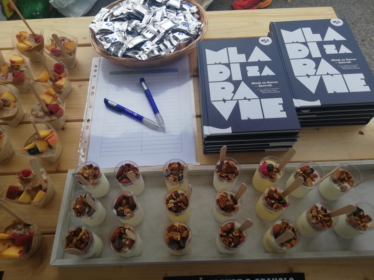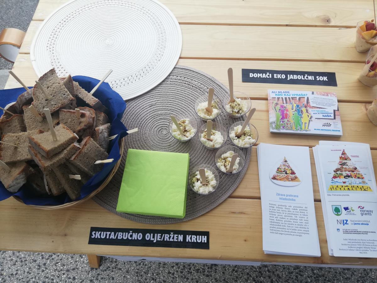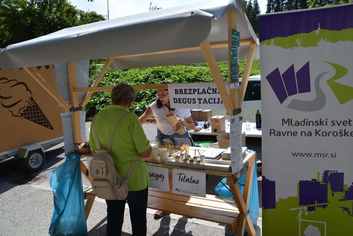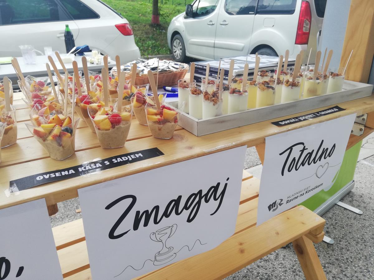 V sklopu projekta Za zdravje mladih smo pod sloganom »Kupuj lokalno, zmagaj totalno« člani Mladinskega sveta Ravne v sklopu Avguštinovega sejma, 24. 8., pripravili stojnico, na kateri smo mimoidočim brezplačno ponudili degustacijo jedi, pripravljenih iz sestavin okoliških kmetij in lokalnih ponudnikov. Za zajtrk so lahko obiskovalci poskusili domače jogurte z granolo, ovseno kašo s sadjem, uživali so lahko v domačem rženem kruhu in skuti z bučnim oljem ali pa si privoščili katerega od mladih sirov z lokalnih kmetij. Zajtrk je opoldan nadomestilo kosilo, prav tako v celoti pripravljeno iz zdravih lokalnih sestavin – poskusiti je bilo mogoče pečene testenine z ekološko zelenjavo ter koroško klasiko – »rpičevo župo«. Skupaj z jedmi smo obiskovalcem stojnice predali tudi nasvete, kako pripraviti zdrav in hranilen obrok iz lokalnih sestavin, ter jih opolnomočili s priporočili, zbranimi v brošuri. Cilj akcije je bil ljudem pokazati, da lahko z nakupom lokalnih sestavin podprejo ponudnike v naši regiji in si iz njih pripravijo različne obroke, ki so ne le zdravi, temveč tudi enostavni za pripravo in nadvse okusni. Glede na zadovoljstvo mimoidočih (najbolj veseli smo bili komentarja mladega obiskovalca: »To je najboljša gostilna na Svetu, pa še zastojn je«), verjamemo, da je bil naš cilj dosežen.
