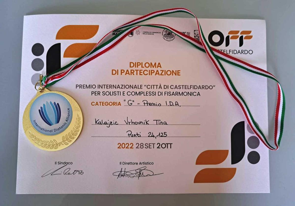 Tina Vrhovnik Kalajžič osvojila prvo mesto v diatonični harmoniki v Italiji