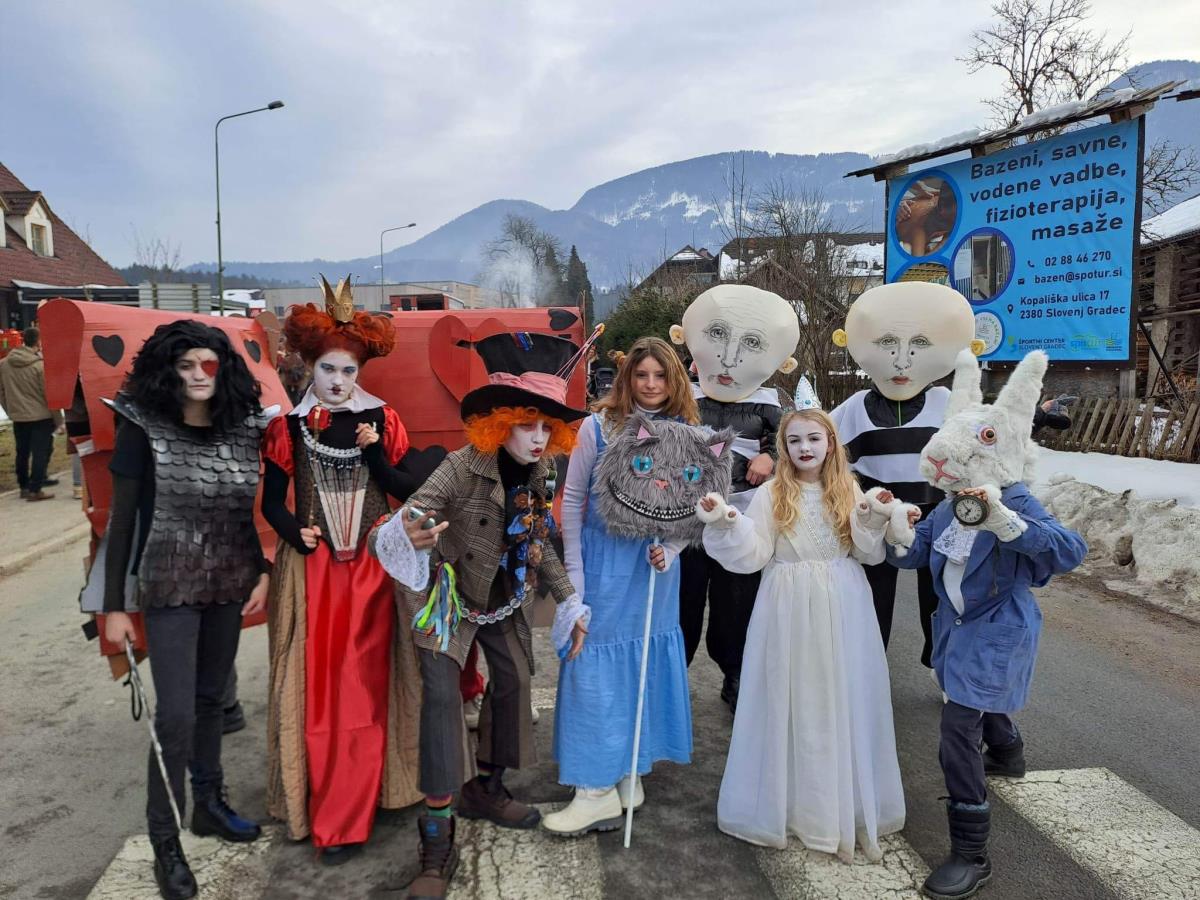 Vsi, ki so stali ob strani in so opazovali povorko in pustne šeme, so lahko videli, kako se bodo delile višje plače v javnem sektorju, pujsi in mesarji pa za manj mesa. Prebudila se je Alica v čudežni deželi. Kotlje so obiskale filmske zvezde, super junaki iz filma Avengers ter še druga zasedba iz Money Heist.