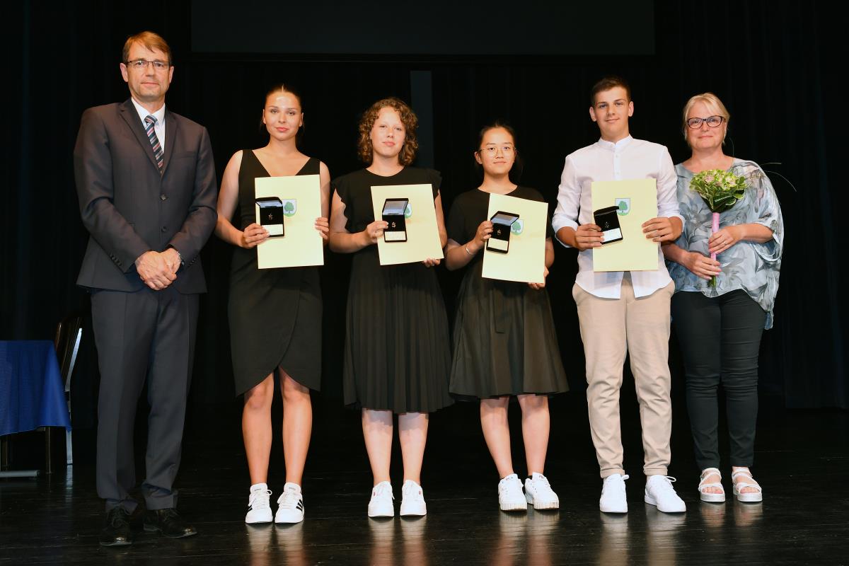 Med prejemniki zlatih petic sta tudi dva učenca Glasbene šole Ravne, ki sta v šestih letih glasbenega izobraževanja dosegla odličen učni uspeh, učenka Nika Praznik in RuYi Ji, ki ju je poučevala učiteljica Nadja Rošer. Ravnatelj Glasbene šole Ravne je mag. Aleksander Kotnik.