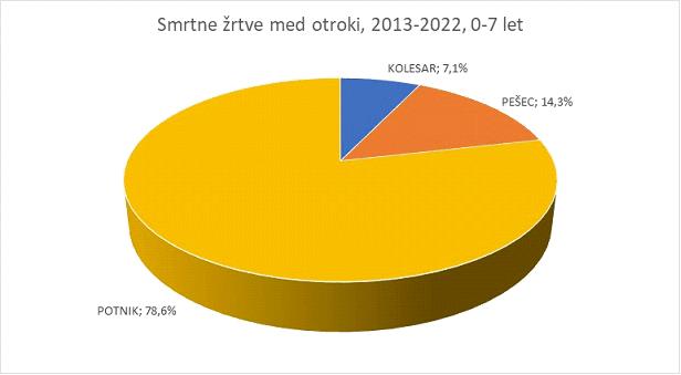 Grafi v fotogaleriji prikazujejo število smrtnih žrtev za obdobje 2013-2022 absolutno in v deležu ter hudo telesno poškodovane. Agencija za varnost prometa in Policija vedno znova poudarjata, da je izguba ali huda poškodba otroka v prometni nesreči tragedija, ki je ne bi smela doživeti nobena družina. Zato vse voznike in druge udeležence v prometu ponovno naprošata za strpno udeležbo v prometu z največjo možno mero odgovornosti.