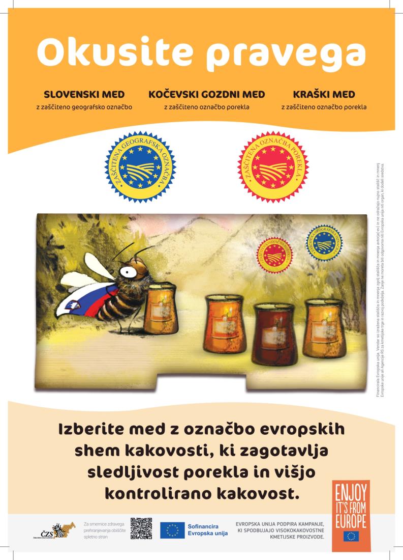 Čebelarska zveza Slovenije bo do konca marca 2026 izvajala evropski projekt promocije medu z zaščiteno geografsko označbo »Enjoy, it's from Europe« za dvig prepoznavnosti medu iz evropskih shem kakovosti, v okviru katerega bo izvedla številne promocijske aktivnosti. Potrošnik lahko kupi med iz EU shem višje kakovosti pri trgovcih na tržnicah, preko spleta ali prineposredno pri čebelarju. Seznam čebelarjev, ki so vključeni v EU sheme kakovosti je dostopen na spletni strani https://www.okusi-med.si/. Vključevanje v EU sheme višje kakovosti na področju medu omogoča čebelarju boljše trženje medu in doseganje višjega prihodka, dvig prepoznavnosti njegovega ugleda, s tem pa tudi ugleda slovenskega čebelarstva.