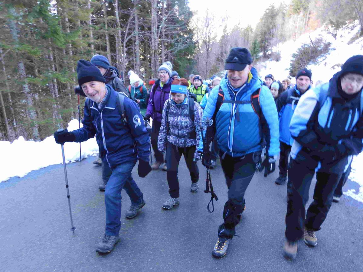Skupaj je okoli od štiri do pet ur hoje, tempo in pogoji pa so bili precej zahtevni, precej odvisni od nočnega ali dnevnega pohoda in od tega, kakšna je zima. Vse do Kumra so hodili po poti skoraj brez snega, od tam naprej pa ga je bilo pod koleni, je povedal eden od petih vodnikov PD Ravne Alojz Pristavnik. Dan je bil lep, sončen in poln resnično lepih razgledov. Hodili so v strnjeni koloni, ki jo je vodil vodnik Viljem Kotnik in ostali vodniki PD Ravne na Koroškem (Veronika Kotnik, Ivan Cigale in Jože Apat). Za vsak avtobus pohodnikov (3 avtobusi so bili na poti) je predvidenih po pet planinskih vodnikov.