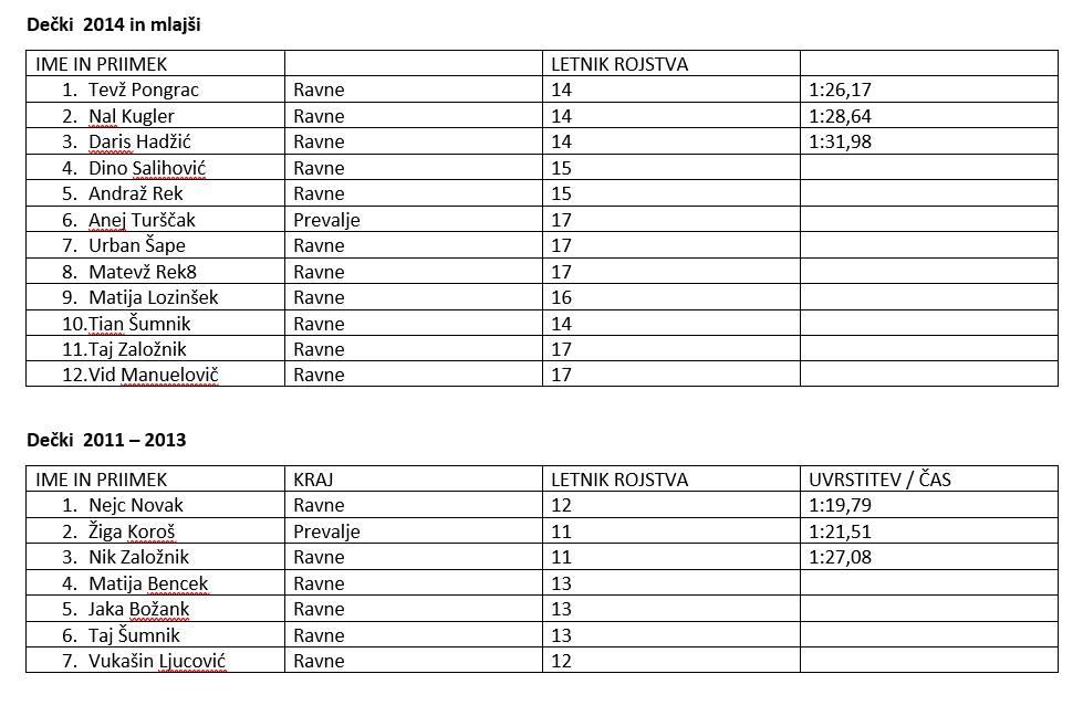 Tek za otroke je potekal okoli osnovne šole na Javorniku in so ga tekli v dveh kategorijah. Tradicionalen krog okoli naselja Javornik so pretekli vsi udeleženci. Najhitrejši pa so bili naši mladi atleti Koroškega atletskega kluba (KAK), ki so ponovno uspešno nastopili. Ana Vita Verneker je v kategoriji žensk absolutno zmagala, Urša Brezovnik je osvojila 3. mesto in Žiga Verneker je v kategoriji moških zaostal le za Aleksejem Klemenčičem iz AK Slovenj Gradec.