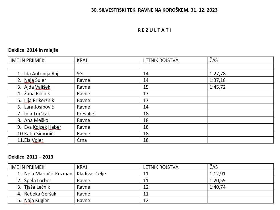 30. Silvestrski tek na Ravnah