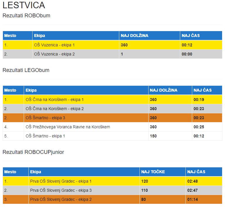 Tekmovanja, ki privablja vedno več mladih, se je letos skupaj z mentorji udeležilo 34 navdušencev iz koroških šol. V hitrostni vožnji robotov, sestavljenih iz kock, so se učenci v različnih kategorijah pomerili na zelo zahtevnih progah. Najuspešnejša je bila ekipa učencev Prve osnovne šole iz Slovenj Gradca. Privozili so si uvrstitev na državno tekmovanje, ki bo meseca maja v Mariboru.