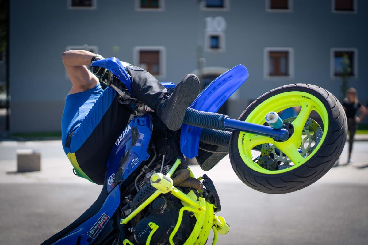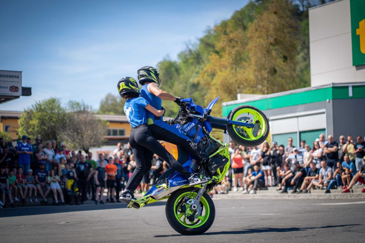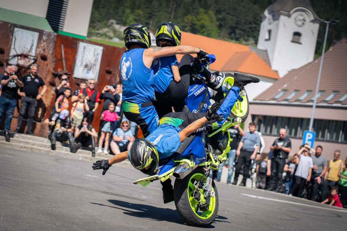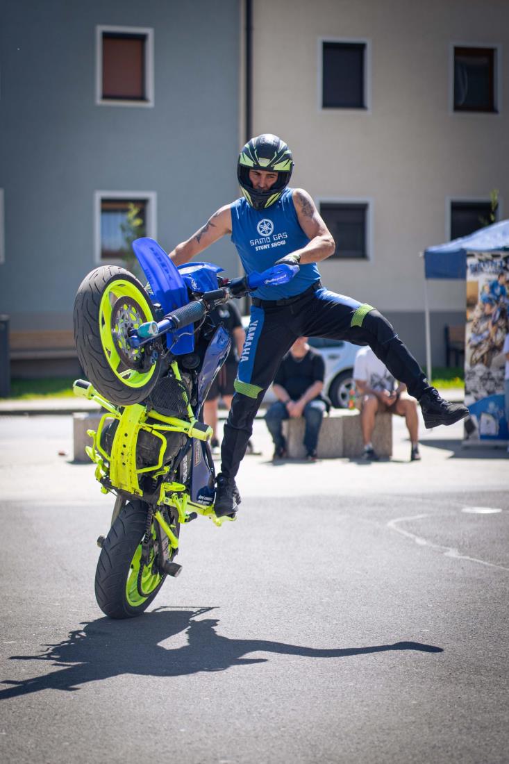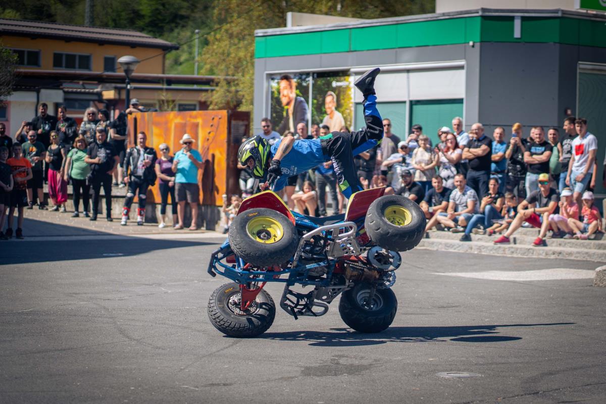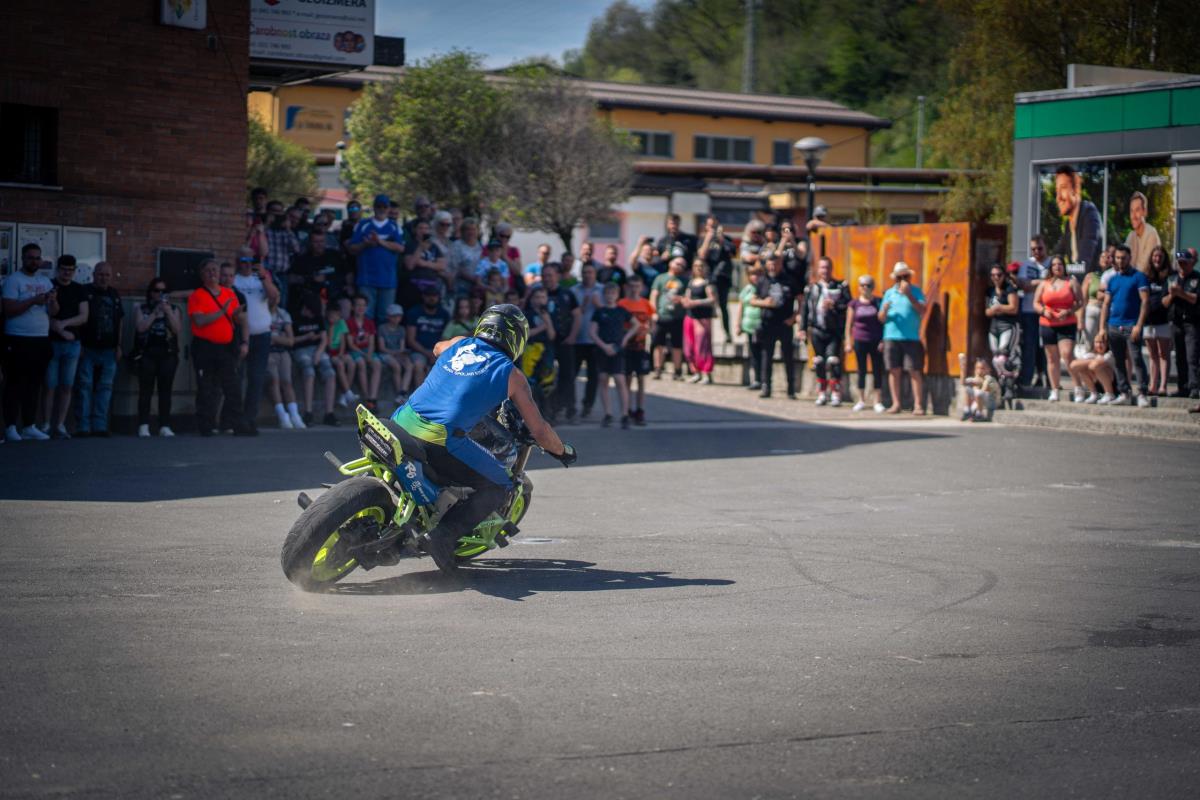 Posebnost letošnjega moto žegnanja je bil nastop stunt riderja Dejana Špoljarja in prijateljice, ki je obiskovalcem pokazal kar nekaj akrobatskih trikov s svojim motornim kolesomter tudi na štirikolestniku.