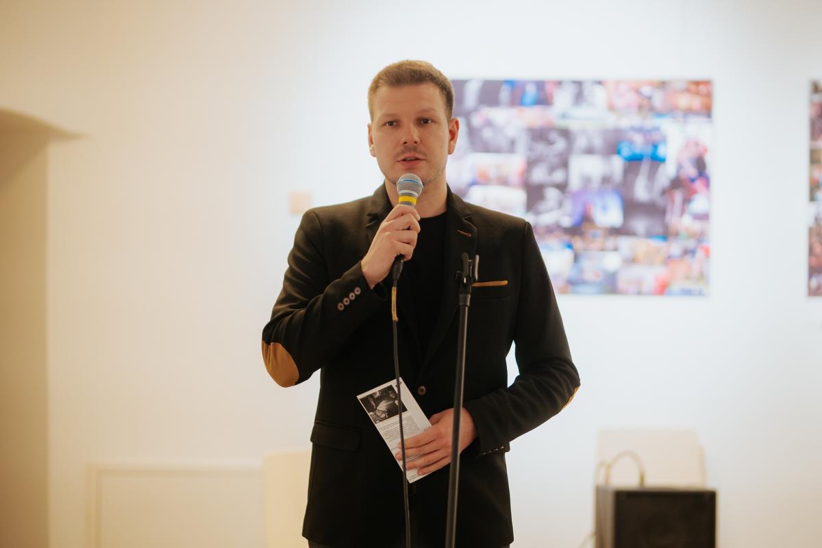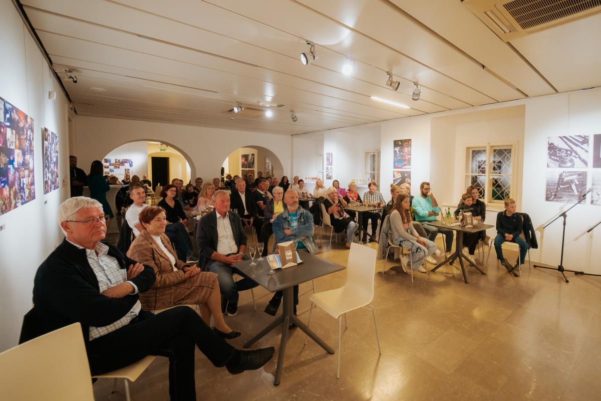Zbrano občinstvo je pozdravil in nagovoril direktor ravenske knjižnice Aljaž Verhovnik.