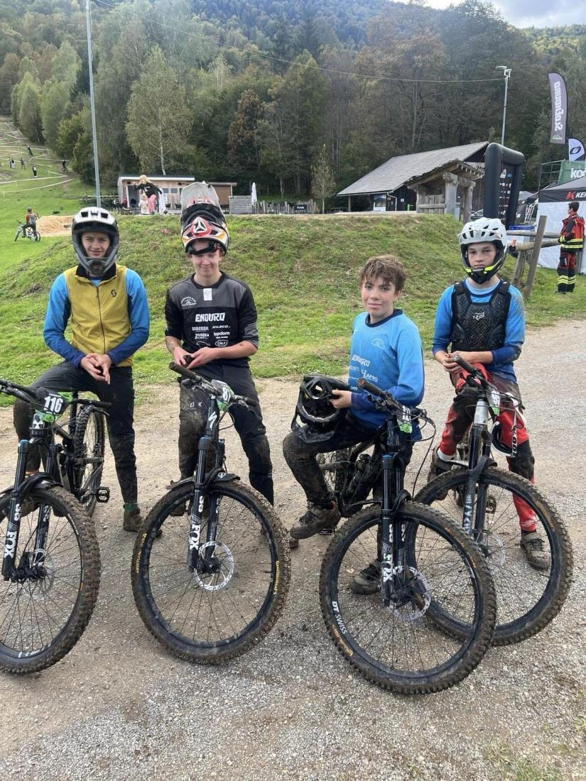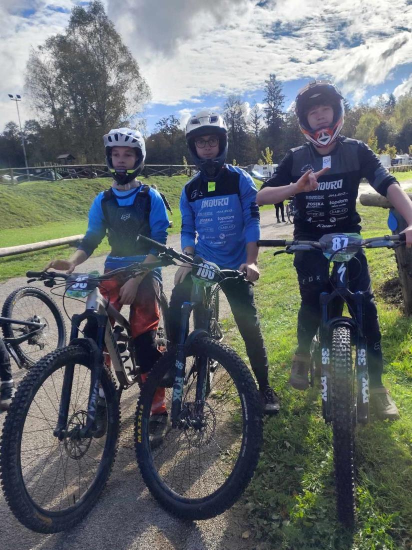 V seriji SloEnduro je minuli vikend v Kočevju potekala predzadnja dirka v enduru. Sobotni dež je naredil razmere na tekmi zelo zahtevne, saj se je blato oprijemalo koles in zamazalo korenine ter skale. Od osmih članov Kolesarskega kluba Ravne jih je do konca prišlo le šest: Nežka je ponovno zmagala v kategoriji U17 in bila nahitrejša med vsemi ženskami na etapi Superstage, Jakob je osvojil 3. mesto med U15, Tian pa je po odlični prvi etapi naredil nekaj napak in zaključil na 5. mestu.