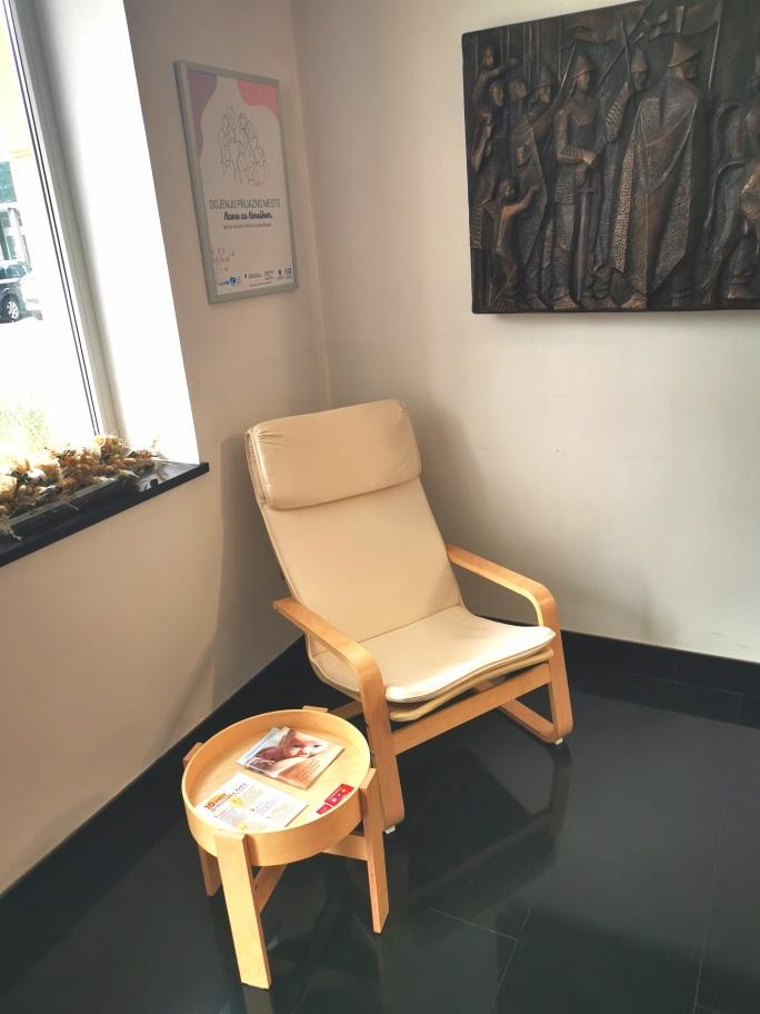 Kotiček za dojenje je prostor, kjer lahko mati varno in v miru podoji svojega otroka ali izbrizga mleko. Za mamice smo po priporočilih in smernicah nacionalnega projekta in UNICEF pripravili svetel in prijazen kotiček, dostopen z otroškim vozičkom, kjer je na voljo potrebna oprema, od udobnega fotelja, odlagalne površine, vtičnice in koša za smeti.