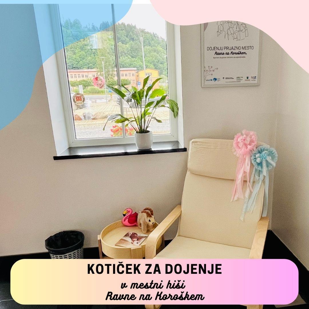 V Mestni hiši (Gačnikova pot 5, 2390 Ravne na Koroškem) je urejen namenski kotiček za doječe mamice.