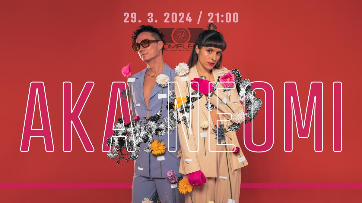 AKA Neomi je ljubljansko dolenjska skupina, katere jedro že nekaj let tvorita pevka in pesmopiska Saša Vipotnik in multiinstrumentalist in producent Mario Babojelić. Spremljajo ju basist Dejan Slak in bobnar Marko Grubar. Slovensko pop sceno so takrat še Neomi prevetrili s prvim albumom Poglej in sedaj dobro poznanimi pesmimi Odpri oči, Čudovito in Poglej. Sledila je krajša pavza, po kateri se je Neomi člansko in žanrsko preobrazila, njihov stil je zavijugal v indie pop, trip hop in psihedelični noise. Nastopili so na avstrijskem Waves Vienna, portugalskem Westway Labu, nizozemskem Eurosonicu in delili oder s Roisin Murphy na njenem ljubljanskem koncertu. Izšel je drugi album z naslovom “Beautiful Disasters”, ki je požel pozitivne kritike tako doma, kot v tujini in bil nominiran za Zlato piščal v kategoriji album leta v letu 2020. Zdravstvena kriza je načrte nekoliko prekrižala, a ustvarjali so dalje in izšlo je še nekaj pesmi v angleškem jeziku, med njimi Grow Old, The View in Self Service, zatem pa so se spet vrnili k materinščini. Na prihajajočem tretjem albumu, se je pod besedila poleg Vipotnik podpisala še njena dolgoletna življenjska sopotnica Eva Taja Cimerman in v pesmi prinesla svojstven humor in nekaj več optimizma. Glasba se je napolnila z duri in plesnimi ritmi. Album “Lepo se svetiš v temi”, na katerem boste našli že izdane single Nočna Zver, Vesolje in Bakhantka bo razsvetlil najbolj temne kotičke vaše notranjosti (in to brez pomoči kolonoskopa).